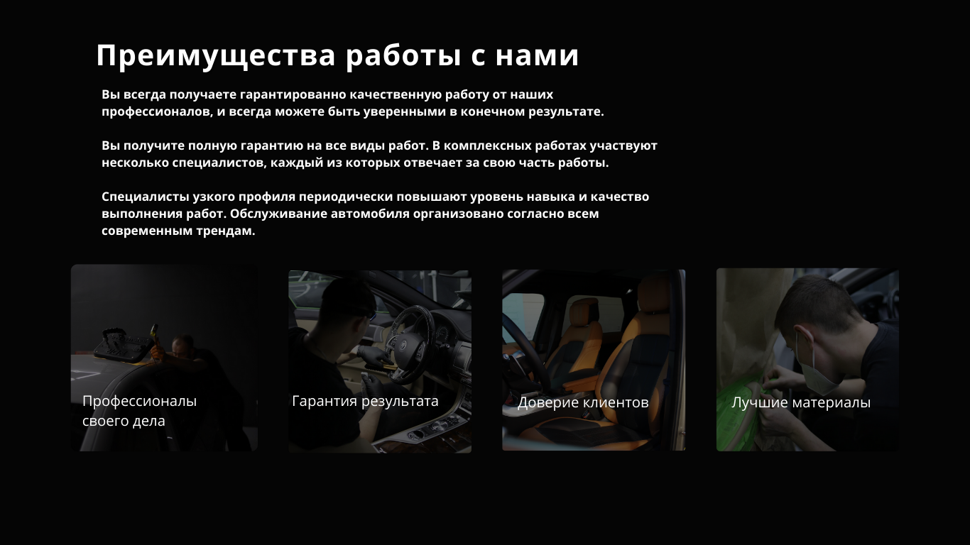 Вы всегда получаете гарантированно качественную работу от наших профессионалов, и всегда можете быть уверенными в конечном результате.